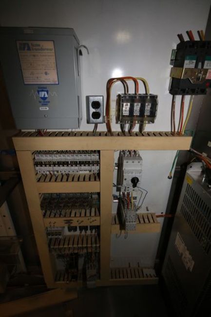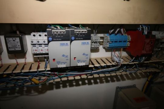 Filling Line Control Cabinet, Includes Allen-Bradley 17-Slot PLC, CAT #: 1756-A17, Series B, S/N 0069A228, Part No.: 96346277, Allen-Bradley Kinetix 6000 Power Supply/ Servo Drive, (2) Allen-Bradley 1606-XL Power Supply, Other Fuses and Support Contents, Cabinet Dims.: 99"L x 20" W x 75" H