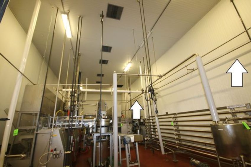 Remaining Installed S/S Piping, Valves & Fittings Throughout Aseptic Filling & Batch Room, Includes Aprox. 300 ft of 1.5” S/S Piping & Aprox. 200 ft of 2” S/S Piping, Also Includes (2) 1.5” 3 way Ball Valves, (2) 2” 2 way Ball Valves, (3) 2” Air Operated Butterfly Valves, (2) Spring Load Check Valves, (9) 2” Manual Butterfly Valves, (Note: In Room Only, Does not Include Valves or Fittings Connected to Batching & Filling Systems Previously Sold)