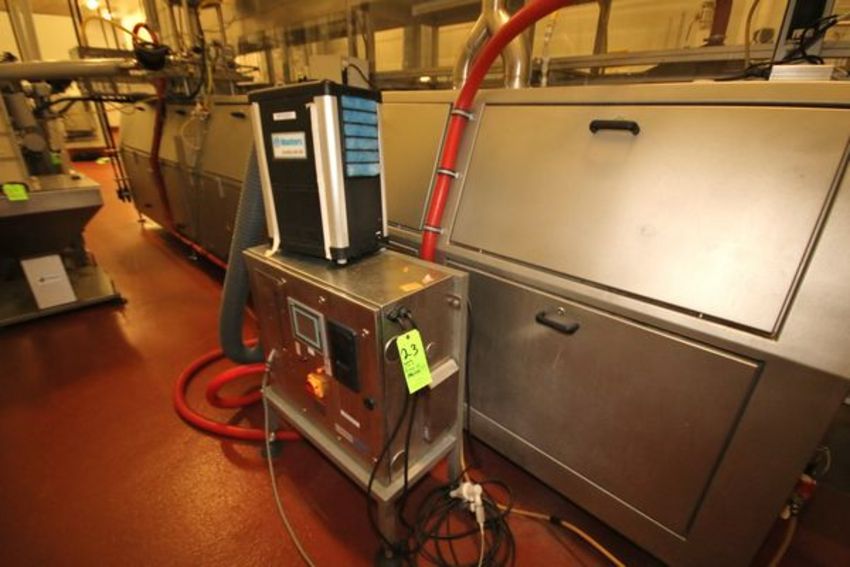 Bulk Bid of 2012 Ultra Clean Hot Fill Gusset Pouch Filling Line Equipped to Fill 3.2 oz, 3.5 oz & 4 oz Pouches @ 100 ppm, Includes Effytec Form Fill & Seal (HFFS) Filler, Cap Feed System, Date Coder, Peroxide (H202) Sterilization System & Out-Feed Conveyor. Includes Lots 22 to 25