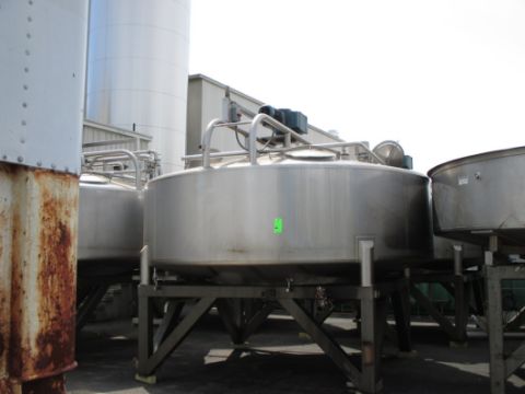 Feldmeier 4700 Gallon Capacity Vertical Single Shell Infusion Tank, Dome Top, Conical Bottom, 168" Diameter, 7.5 H.P. inverta Duty Motor 2-14 RPM, (2) Man Way Doors in Top of Dome, and (1) Dump Hatch in Top of Dome, 6" Tri-Clamp Outlet, Spray Balls (Note: Tank Mounted on 48" High Square Stock Frame that can be Removed.)