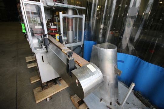 MRM/Elgin 8-Head Inline Type S/S Shrouded Screw Capper with Aprox. 34-1/2" L Infeed and Aprox. 33" L Outfeed Conveyor with 3-1/4" W Rex Type Plastic Chain, Controls and VFD including S/S Cap Chute Feeder (Located in PA, Loading Included in Sale Price)***TMW***
