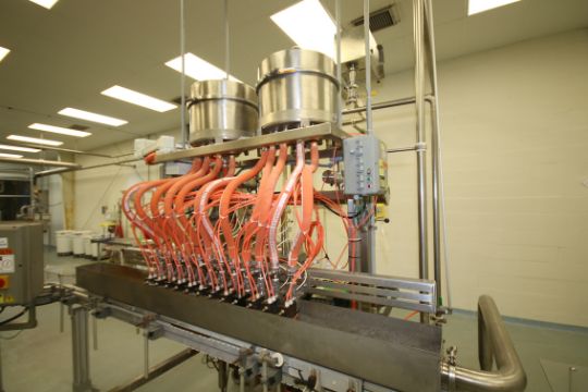 Elf 12-Head Inline Pressure Filler, Model FB171SP-B includes (2) Aprox. 15" H x 18" W S/S Fill Bowl Manifolds, (2) Tri-Clover Air Actuated Butterfly Valves, Fuller S/S Filter with Controls and Elf Touchpad Display(Located in PA) ***TMW***