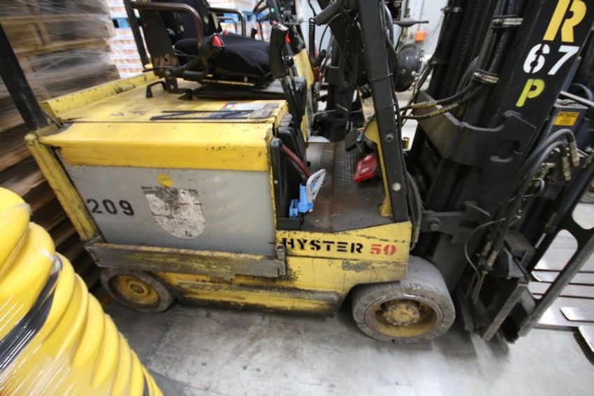 HYSTER, 3 Stage Mast Forklift, Model E50XM, S/N C108V21200R , 3,700lbs Capacity, Equipped with LORAN Push Pull Slip Sheet Attachment, Side Shift and Fork Spreading Capabilities (Lift 67) (Slip Sheet Attachment Forks Do Not Spread Forklift Mobile) (Located in Dekalb, IL)