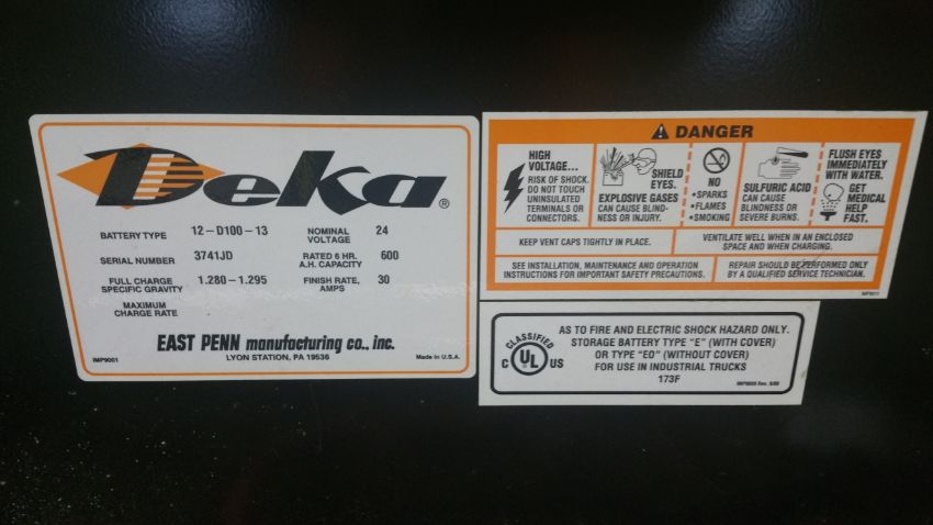 (3) Deka D Series 24V Batteries, New in 2014 Used Less Than 6 Months, 12 ¾” x 30 11/16” x 28 7/16”, Tagged Lot 15 (Located in Indiana)