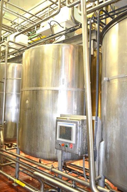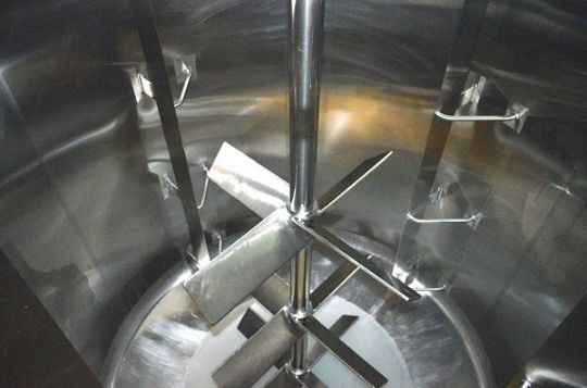 1,600 Gallon Vertical Stainless Steel Mixing Tank Single Wall, Dome Top, Dish Bottom, Stainless steel legs, Last used in production plant, 3 inch center bottom outlet, 30 inch x 16 inch top manhole, Interior Baffles with Bridge Top Mounted Lightnin Agitator Model 47Q25V – 25 HP Motor, Several Blades on Agitator (Located in NC) ***FBEV***