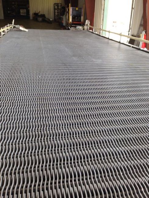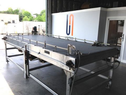 Alliance 5x14 Bidirectional Accumulation Table Serial: 5191 5 Feet wide x 14 feet long, 46 inch elevation height, Stainless Steel Construction with Plastic Intralox Belting, Last running PET Bottles .5L to 2L from 100 to 400 Bottles/Minute, In Operation up to March 2015, Unit was last utilized after bottle labelers and before case packers, SEW Motor End Drive, Good Condition
