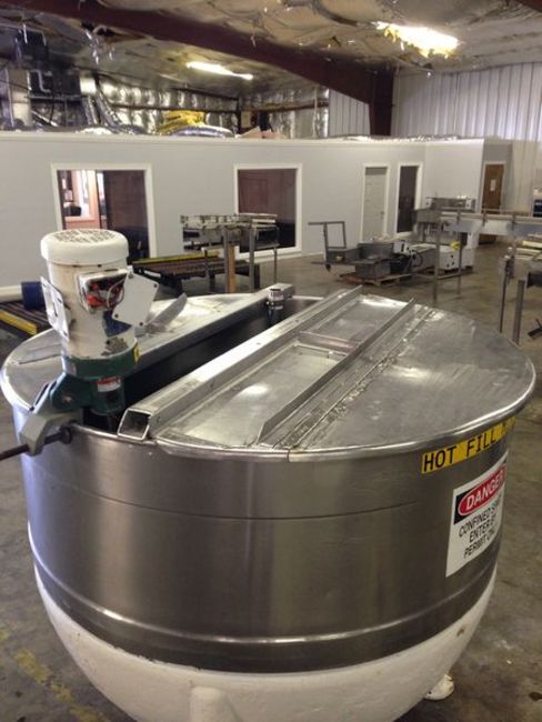 500 Gallon Stainless Steel Mixing Kettle, Stainless Steel Construction, approximately 500 Gallons, SPX Lightin Mixer, Top Hinged Lids, Mounted on Legs (Located in NC) ***FBEV***