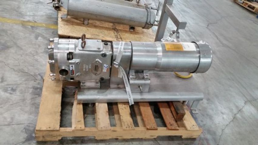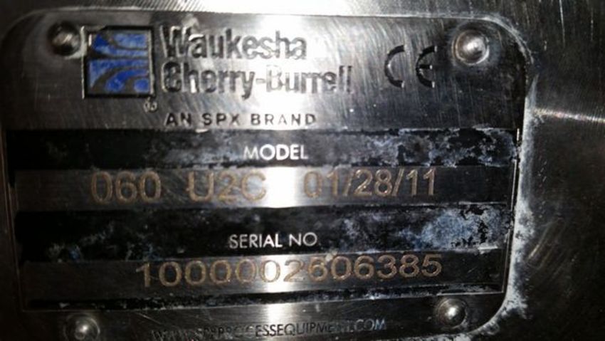 Stainless Steel Waukesha Positive Displacement Pump 2.5in IN 2.5in OUT Model: 060 U2C S/N: 1000002606385 Year: 1/28/11, Wasdown Motor with Stainless Steel Base (Located in NC) ***FBEV***