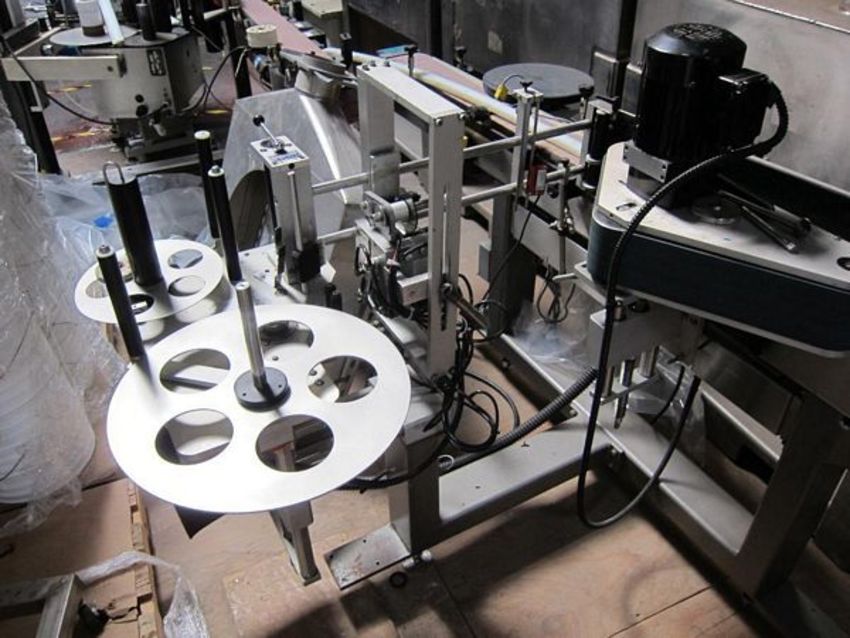 Quadrel Pressure Sensitive Labeler, Model: VersaLine S/N: Q697-074 Full Wrap Around Labeler for Round Bottles, Year 1997, Inline pressure sensitive labeler with coder, Equipped with coder, timing wheel, wrap around belt and integrated 8?conveyor, Power requirements are 110VAC/60Hz Single Phase (Located in NC) ***FBEV***
