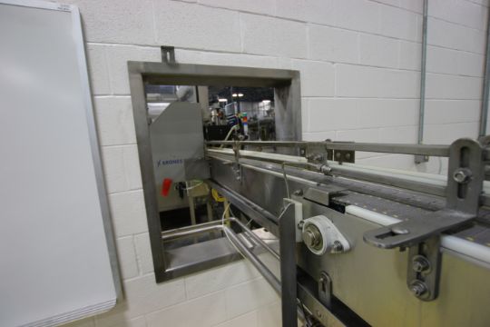 Sentry Stainless Steel Bottle Conveyer, Approx 15' L, (Note: Out-Feed from Labeler to Deceleration Table) (Located in TN)***RDBL