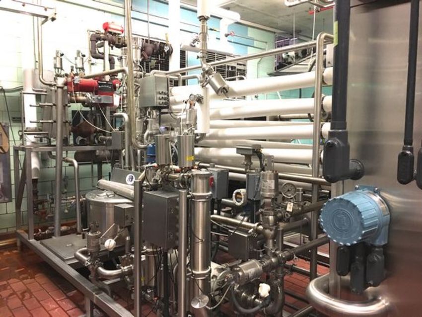 Alfa Laval Skid Mounted HTST Pasteurization System Serial: 51072-201 (A&B Process) Year: 2005 All Skid Mounted – Stainless Steel, Designed and Integrated by A&B Process Systems, Alfa Laval Plate and Frame Heat Exchanger, Cooling Loops, Hot Water Set, A&B Process Balance Tank, Valves, Flow Meter Controls, Stainless Steel Control Panel with PLC Controls, Operator Touchscreen with Chart Recorders, Last heated juice products for bottling plant, Last running 36 Gallons/Minute at 200ºF (Located in NC) ***FBEV***