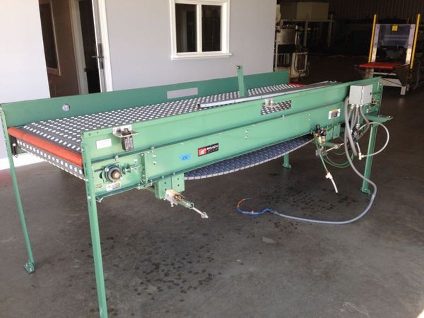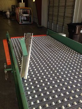 Roach Conveyor Inline Case Switch Serial: 421375 Last used at a beverage plant to divert cases – condition is excellent, measures approx. 8 feet long x 3 feet wide, drive motor included, Intralox Plastic Belt Conveyor with Rubber rollers to divert cases (Located in NC) ***FBEV***
