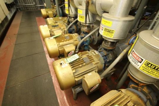 { Group of lots: 377, 378, 379, 380, 381, 382, 383, 384, 385, 386, 387, 388 } Baldor Reliance 30 hp Circulating Pumpsw, Frame #286JP, Cat #EJPM4108T, 3530 RPM, 208-230/460 V, 3 Pahse with Benshaw Starters and Butterfly Valves (Note: Rig Fee $975.00)