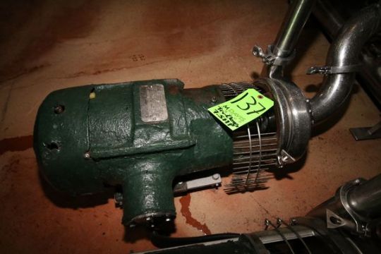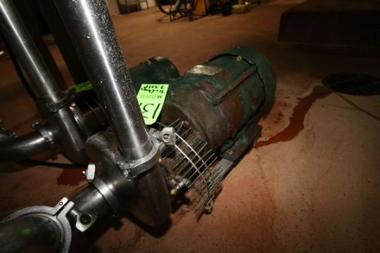 { Choice of lots: 136, 137, 138 (P) } Tri-Clover 7.5 hp Centrifugal Pump, Model C328MF21T-S, S/N U723 with 2-1/2" x 1-1/2 Clamp Type S/S Head and 1755 RPM Motor (Note: Rig Fee $75.00)