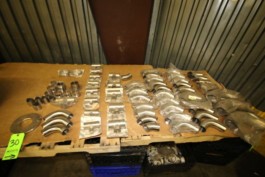 (82) Pcs. - WCB & Other New 1.5" to 3" Sanitary Grade Weld Type S/S Fittings, including Elbows, T's & Etc. (Note: Rig Fee $60.00)