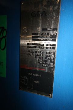 { Group of lots: 377, 378, 379, 380, 381, 382, 383, 384, 385, 386, 387, 388 } 2009 GEA Plate Press, Model 12WP-B2-1, S/N G2009000126 with Allen Bradley MicroLogix 1000 PLC Controls, GE Fanuc Quick Panel Touch-Pad Display and Parker Programmable Liquid Level Control including Surge Tank (Utilized for Raw) (Note: Rig Fee $8450.00)