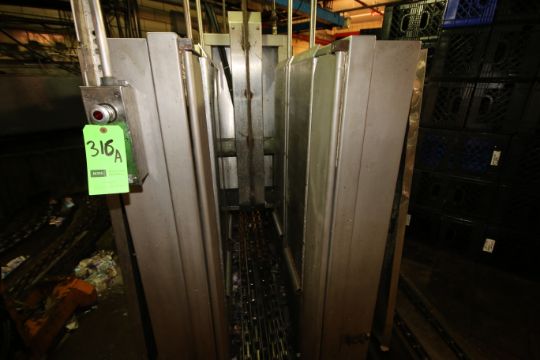 { Group of lots: 316A, 316B } Dairy Conveyor All S/S Hydraulic Dual Case Stacker with Allen Bradley MicroLogix 1000 PLC (Utilized with Qt) (Located Back Ice Box) (Note: Rig Fee $400.00)