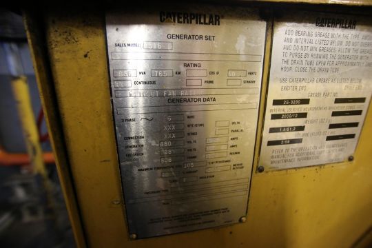 Caterpillar 16-Cylinder All Natural Gas Generator, Model G3516, 956 KVA, 765 KW, 60 hz, 480 V, 1149 Amps, Engine S/N 4EK02568, Water Cooled - Includes Roof Mounted Cooling Tower, Hrs. 63,123.5 (Gen. #5), (SITA Rated – Low Emissions) (NOTE: Rig Fee $3350.00)