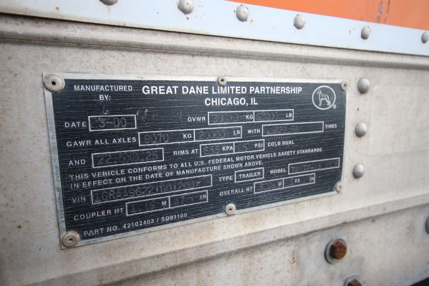 2001 Great Dane 48 ft. Tandem Axle Semi Trailer, VIN #1GRAA96221B012001 with Aluminum Dairy Floor, Roll-Up Rear Door and Carrier Ultra Fresh 2DL Reefer Unit, GVWR 68,000 lbs. (Unit #K-662)