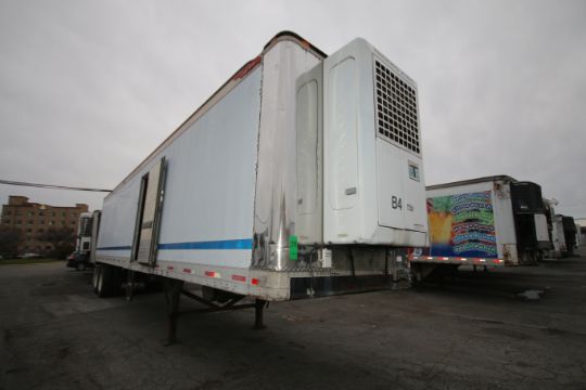 { Choice of lots: 1138, 1140, 1142, 1143, 1145, 1147, 1148, 1149 (P) } 1997 Great Dane Aprox. 45 ft. Tandem Axle Semi Trailer, VIN #1GRAA8625VS034302 with Aluminum Dairy Floor, Right Side Access Hinged Door, Roll-Up Rear Door and Thermo King Super II Max+ Reefer Unit (Unit #L4302) (NOTE: Left Front Top Damage)