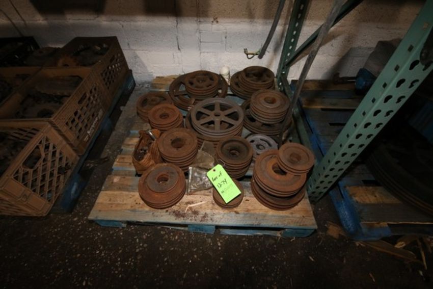 Assorted Drive Parts includes Sprockets and Pullies on (2) Pallets (NOTE: Rig Fee $125.00)