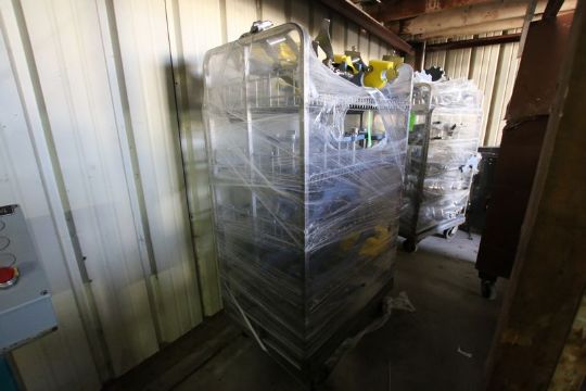 2-Bosse Carts with Assortment of SERAC Filler Change Parts. Including Neck Gripping Parts, Star Wheels, and Others