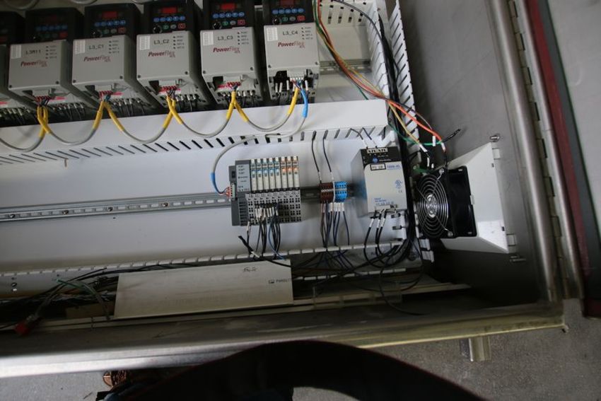 2-Door S/S Control Panel. Includes (18) Allen Bradley 2 HP PowerFlex 40 VFDs, PanelView Plus 700 Operator Touch Screen, 1606 XL Power Supply, 1734 I/0 (Conveyor Control Panel)