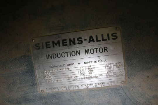 Siemens 150 HP Motor for Seperator. 1770 RPM. Type RD. 460V/3Phase***Located in Brown Storage Building in Room on Left