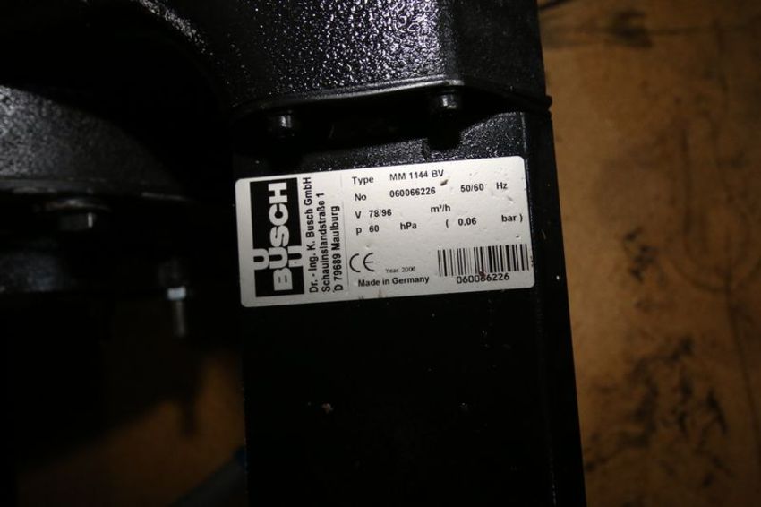 Busch Vacuum Pump. Model Mink MM 1144 AV. 050023363. Incomplete Busch Vacuum Pump. S/N 060066226. .***Located in Truck Wash Bay