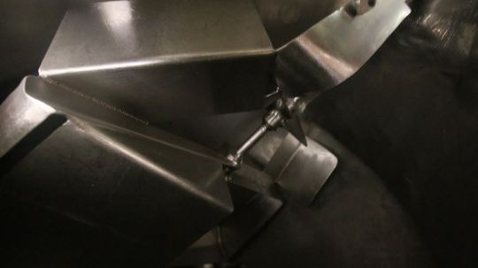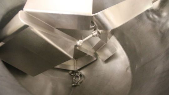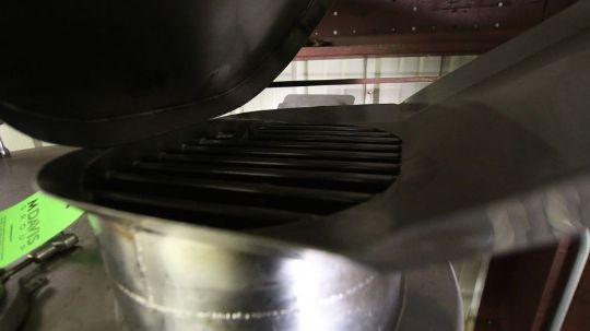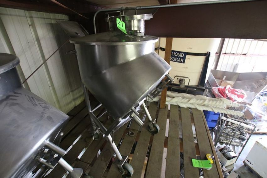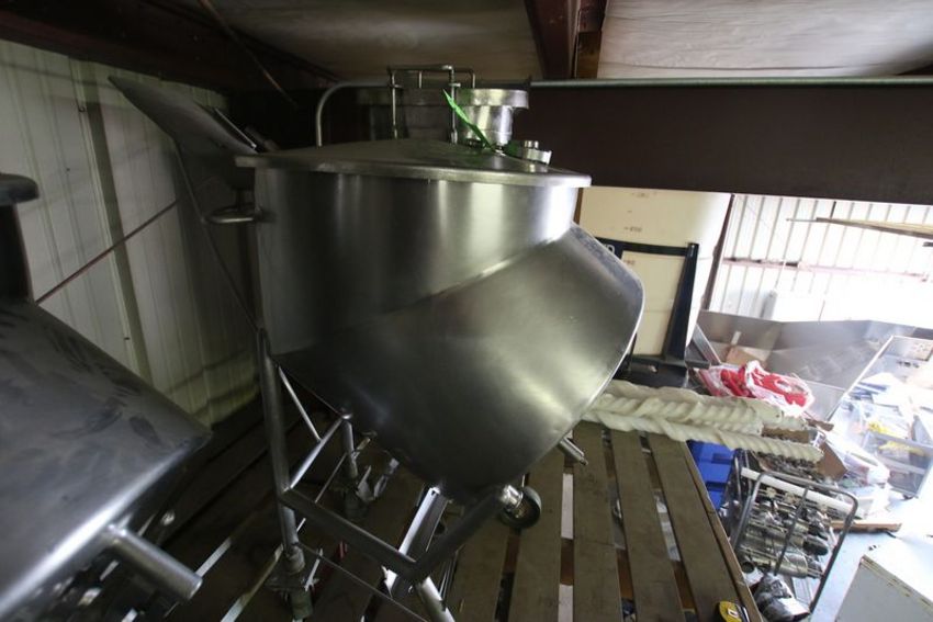 S/S Kettle Mounted on Portable Frame. With Sweep/Scrape Agitation. With Infeed Hopper and Lid. Dimensions: 27" Dia. X 32" Tall ***Located on Mezzanine