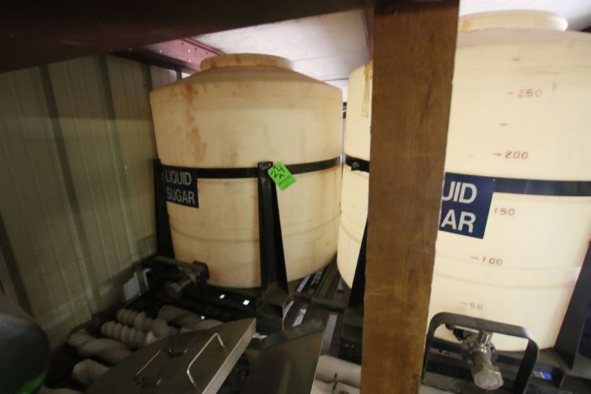 Skid Mounted 300 Gal. Plastic Liquid Sugar Storage Tank. With Butterfly Outlet Valve***Located in Brown Storage Building on Mezzanine