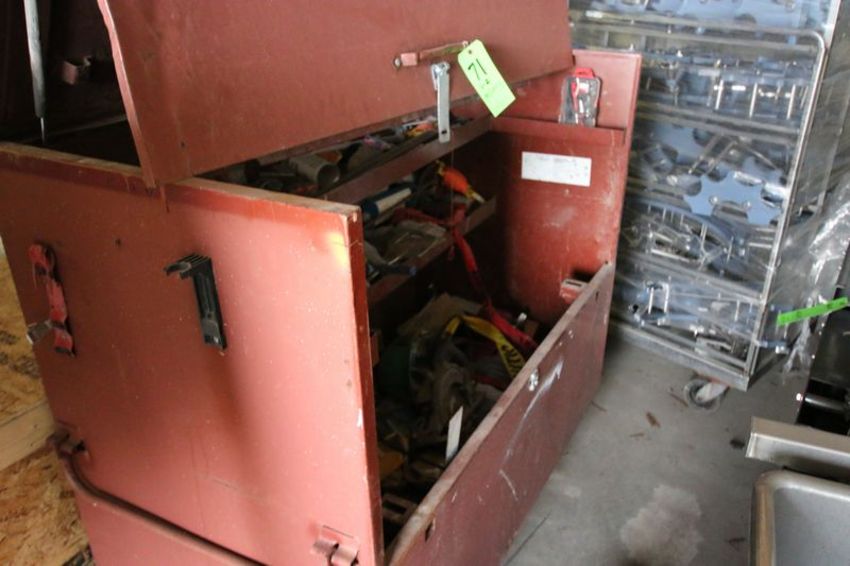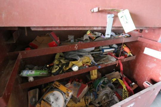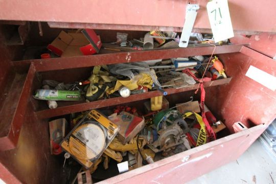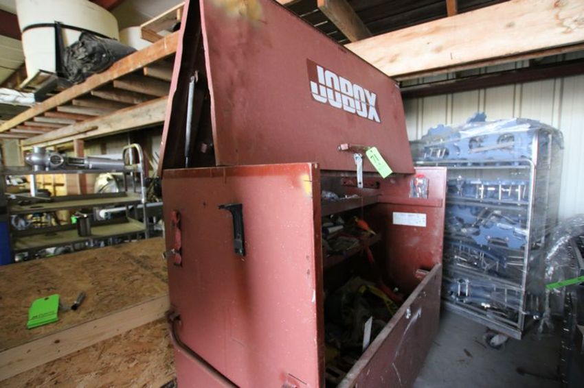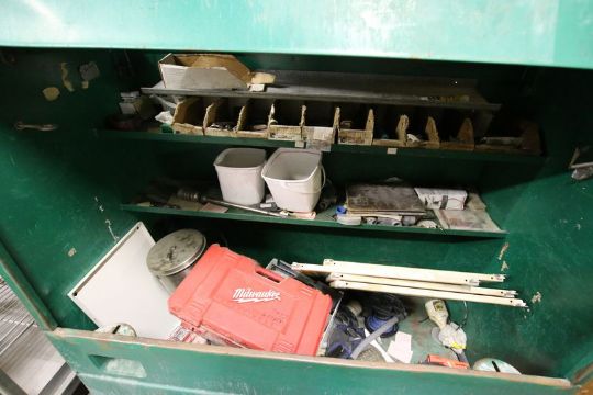 Job Boxes with Contents. Mounted on Portable Casters. Includes Electric Saw. Various Saw Blades. And a Greenlee Job Box with Contents. Mounted on Portable Casters, Contents Include Screens, MCC Safety Switch, Milwaukee Tool Cases, Spolls of Wire, and Other Contents ***Located in Brown Building