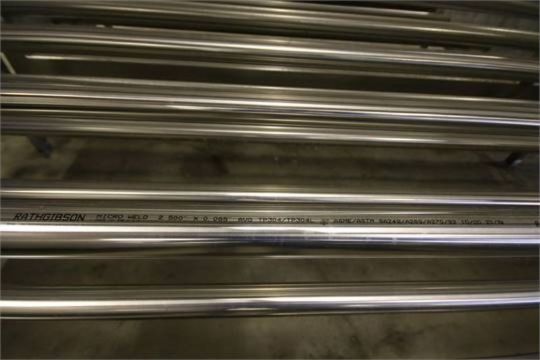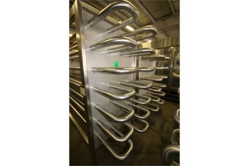 New Tetra 2-1/2" S/S Holding Tube with Rack, 4-Wide x 7-High = 28 Tubes, Aprox. 20 ft. 6" L includes Adjustable Legs (Never Installed) (48)