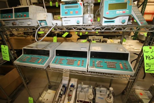 Contents of (2) Shelves of Brinkmann Lb items including: (2) 665 Dosimats; 649 Controller; 718 Stat Titrino; 799 GPT Titrino and (3) 672 Titoprocessors (NOTE: Rack Not Included)
