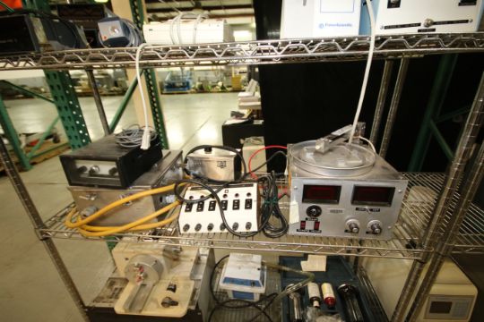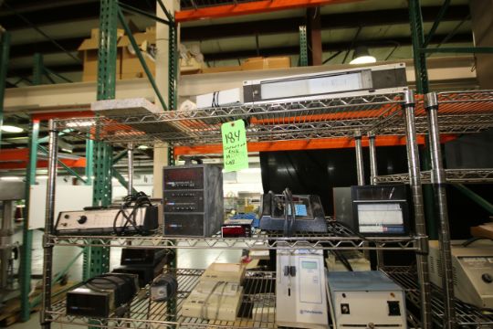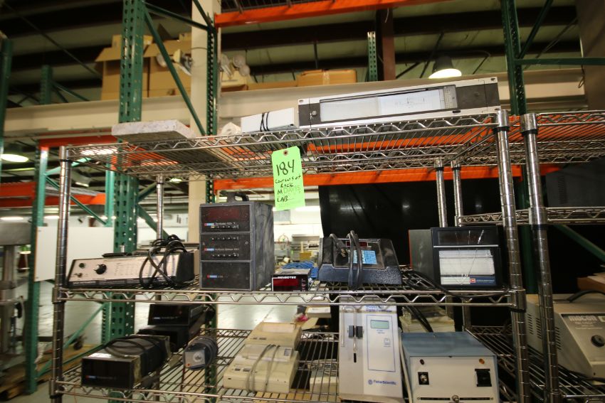 Contents of Rack of Assorted Lab Items includes: Sage Instruments Syringe Pump, Model 341A; Doric Trendicator 402A; Multipoint Selector 405A and 411A; Chrontrol; Leeds & Northrup; (3) Doric Trendicators 410A; (2) DPU-414 Thermal Printers; Fisher Scientific Model 520 Digital Flow Meter; Super Temp Model 200D Condensate Pump and (2) Furite C02 Testers (NOTE: Rack Not Included)