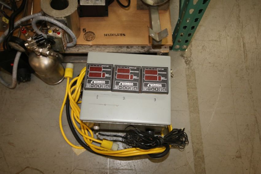 Assorted Autoclave Components including: (2) Racks; Autoclave Engineers Drive System with Assortment of Gauges, Connectors, Valves, Omega Controls, Fittings, Regulators, Etc.