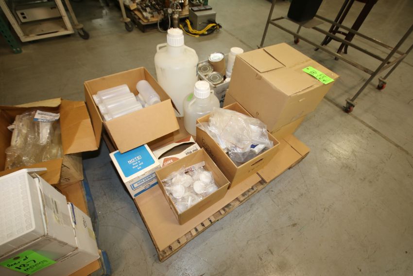 Assorted Lab Supplies on (2) Pallets including Syringes; VWR Pipettors, 200 ul; Pipette Tips; Plastic Cases; Grad Cylinders