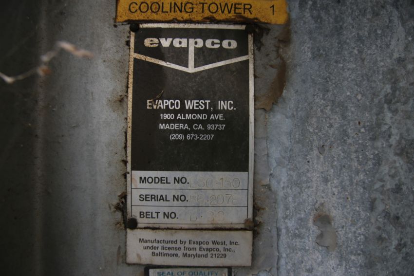 Evapco 3-Fan Evaporative Condenser, Model LSC150, S/N 86 2078, Includes Mojonnier Horizontal Receiver Tank