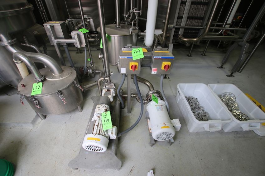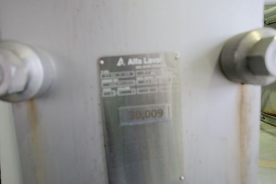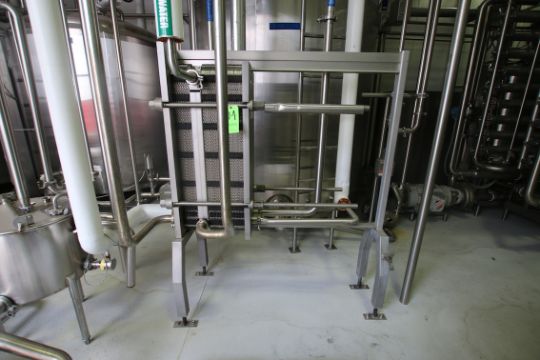 Alfa Laval S/S Plate / Cream Press, Model CLIP 6 RM, Max Working Temp 110 Degrees C 230 Degrees F, MFG#30102-85987, 10 Bar, 145 PSI, Includes (1) Divider, (70) Pro Series S/S Plates, G&H Positive Displacement Cream Pump with 1 HP Drive Motor; Aprox. 20 Gal. S/S Balance Tank; Tri Clover 5 HP Centrifugal Pump; Related Valves & Piping