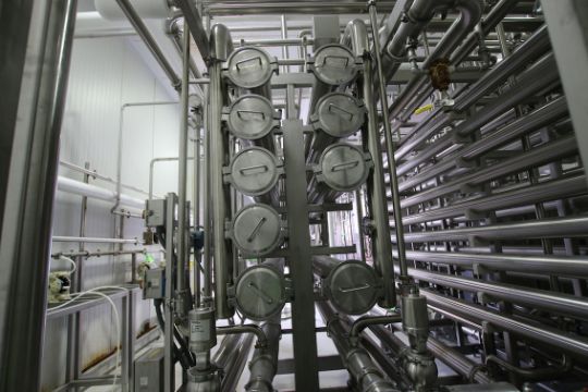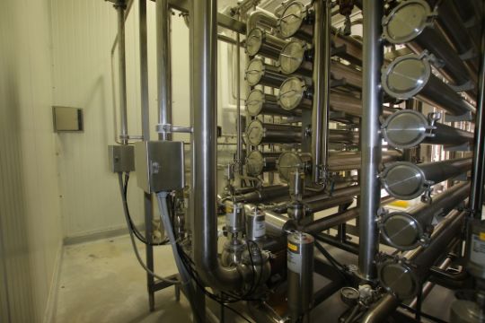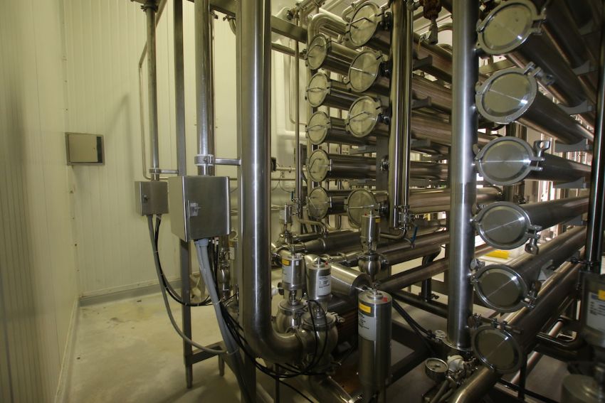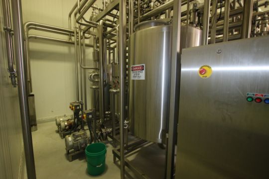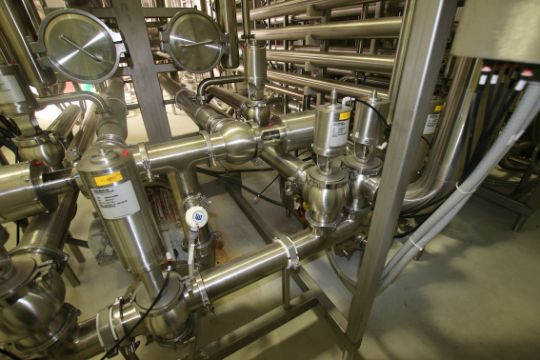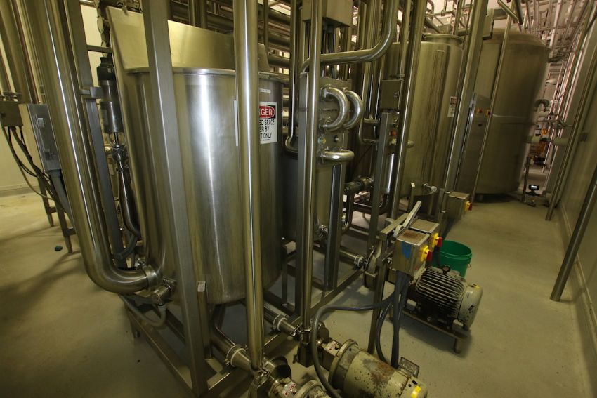 Filtration Engineering Skid Mounted UF System, (1) Rack with (7) Upgraded “2009” Aprox. 10 ft L by 8” S/S Tubes (Drawing #2835-4607) & (1) Rack with (18) Aprox. 10 ft Long by 4” S/S Tubes, Includes Fristam Centrifugal Pumps with (1) 50 hp, (1) 25 hp, (2) 10 hp, (2) 5 hp, (1) 15 hp, (3) S/S Tanks Including 250 Gal, 100 Gal, & 50 Gal for Renteate, Permeate & CIP, Associated S/S Air Valves, Check Valves, Flow Meters, Sensors & Controls with Allen Bradley PLC, Includes Spare Filters