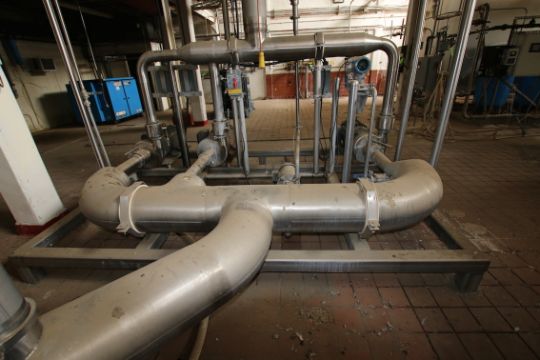 Recirculation Skid Equipped with (4) Centrifugal Pumps, Including (3) AMCO 25 HP & Wright Flow Pumps, Micromotion Online Flow Meter with Digital Read-Out