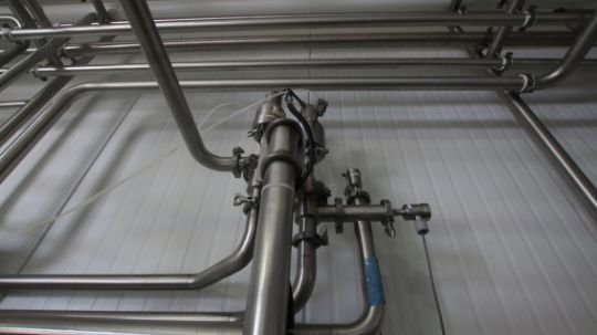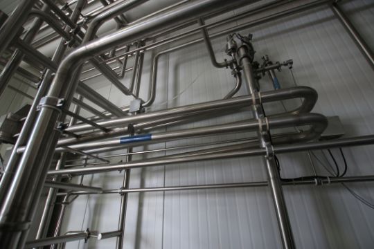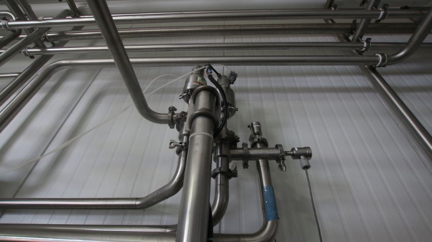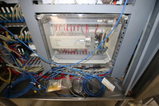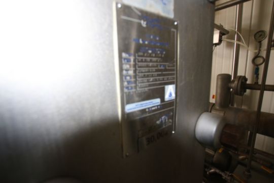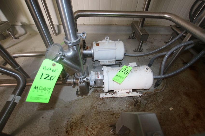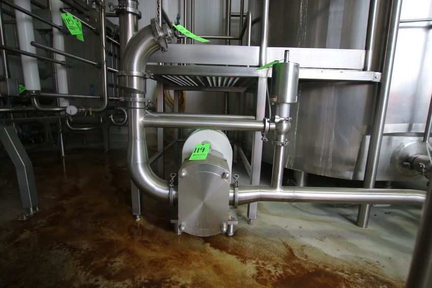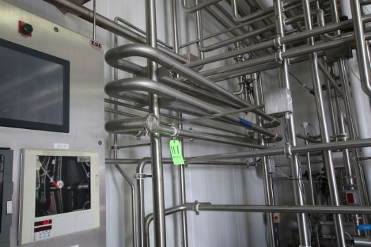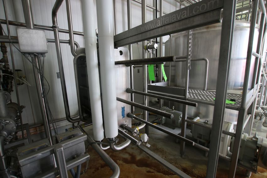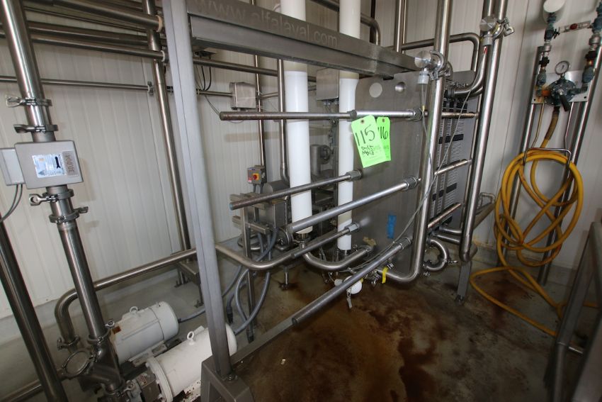 BULK BID LOT Lots 116 - Lot 124 2009 Alfa Laval Aprox. 2,000 Gal per Hour Milk HTST System, with Press Model FRONT6-FRB, S/N 30111-97956, Includes (3) Dividers, (130) Pro Series Plates, Tri Clover Flow Diversion Valve, Aprox. 25 Gallon S/S Balance Tank, 5 pass 120” S/S Holding Tube, (2) Aprox. 3 ft. L S/S Shell & Tube Heat Exchanger, Fristam Positive Displacement Timing Pump, Model FL2-130L, (3) Fristam 5 hp Centrifugal Pumps, Related Piping, Valves & Allen Bradley PLC Controls