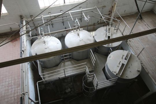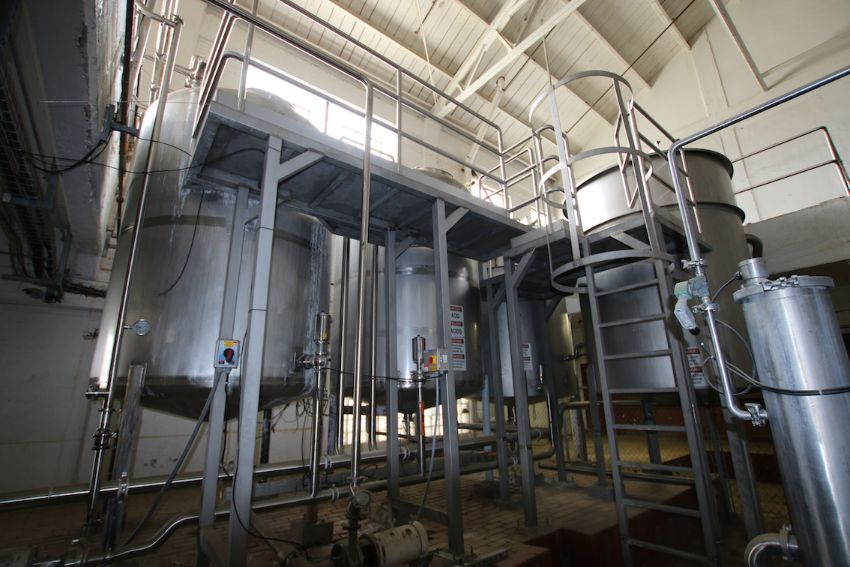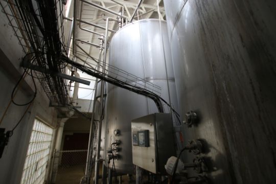 4-Tank CIP System, Includes (2) Walker Dome-Top/Cone-Bottom 1,600 Gallon Tanks Model SSBT S/N 530-1520 & 534-1520, Equipped with Inlet and Outlet Air Valves, (2) Approx 1,500 Gallon Hinge-Top Cone-Bottom, S/S Control Panel with (3) Centrifugal Pumps