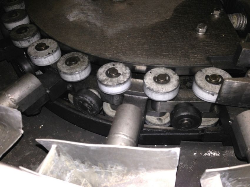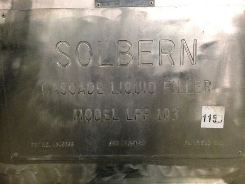 Solbern Liquid Cascade Filler Model: LFF-103 Serial: 25054 Year: 1993 Stainless Steel Construction, Converted in 1997 to run with Angelus 120L Seamer, 79 Funnels, 4 Inch Pitch, Runs up to 1,000 containers per minute (depending on size) (Located in NC--Sold FOB) ***FBEV***