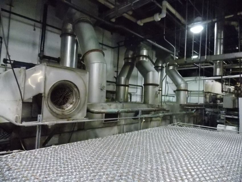I&H 8x30 Stainless Steel Can Warming or Cooling Tunnel Stainless Steel Construction, Plastic Intralox Bed measures 8 feet wide x 30 feet long, includes pumps, tube and shell heat exchanger, control panel, air knife discharge, last ran 12oz. cans at 1100 CPM, Last ran 2014 (Located in NC--Sold FOB) ***FBEV***