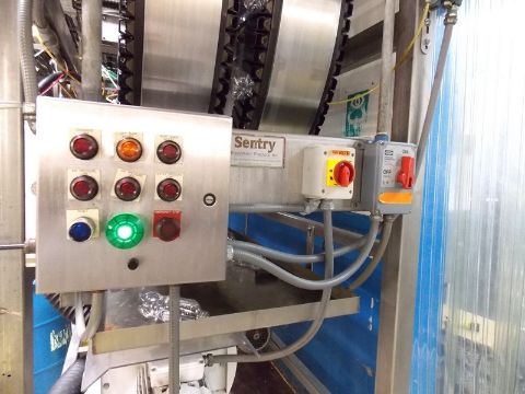 Sentry S Style Lowerator Gripper Rinser with Ionized Air Stainless Steel Construction, Uses Ionized Air to Clean Bottles Prior to Filling, “D” Style Soft Touch Gripper Bubbles with HP1873 Rexnord, Electrics – 460 Volts, 3PH, 60HZ, Very Good Condition Dimensions: 92” long x 42” wide x 141” tall 42.5” Discharge Height – Middle of Gripper 138.5” Infeed Height – Middle of Gripper Setup: 12oz, 20oz, 500mL, and 2L PET Bottles (Located in NC--Sold FOB) ***FBEV***