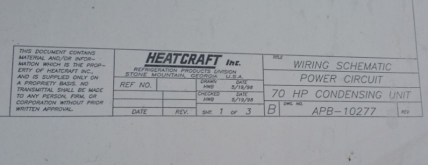 Heatcraft / Climate Control 70 hp 6 - Fan Freon Packaged Condensing System, Drawing # APB-10277, Includes  (2) Mounted Copeland Compressors, Models 6DP3R35ME-TSK-800, SN 11B61879R, 460V 3 Phase, (Note: Installed on Upper Mezzanine) (Located in San Antonio)**LULU**