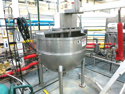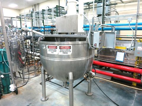 Groen 250 Gallon Double Motion Mixing Kettle Stainless Steel Construction, 250 Gallons, Double Motion Mixing, Leeson adjustable AC Motor Control, Steam Jacketed, Scrap Surface Agitation, Mounted on Legs, White Frame Seen in Picture not Included (Located in NC--Sold FOB) ***FBEV***