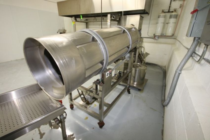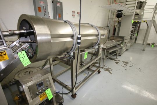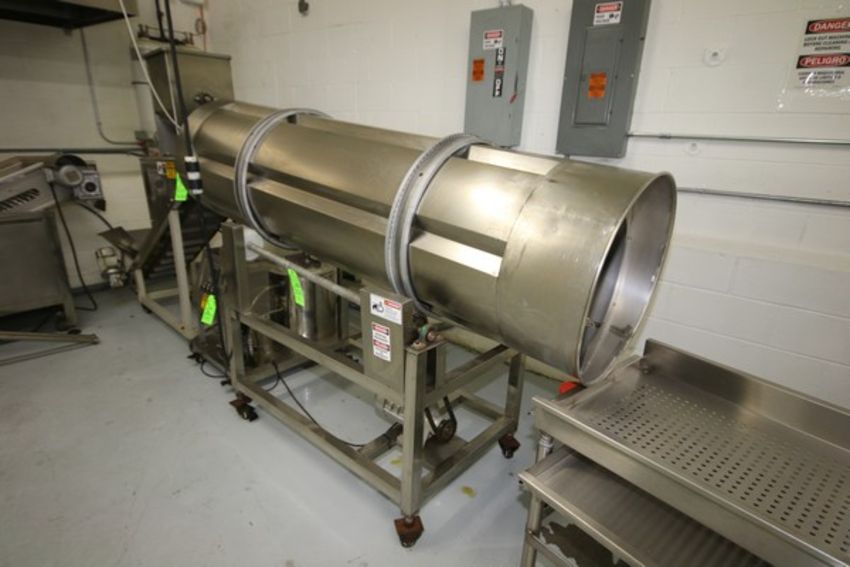 S/S Rotary Tumbler, with Aprox. 1 hp Drive, Aprox. 24" Dia x 87" Long, Mounted on Portable S/S Frame ***Located in NY***