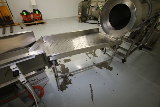 Vibratory Sorting Table. 48" L x 23 W x 33" H, with Discharge Chute and Vibco Motor Unit***Located in NY***